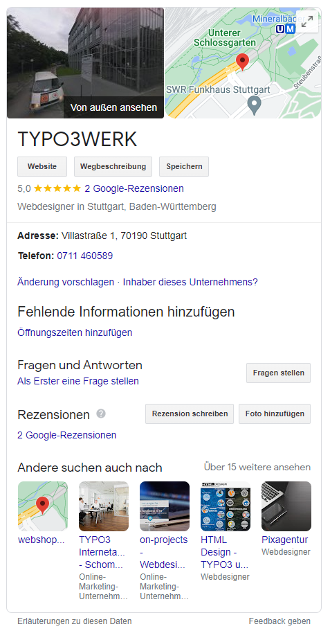 Angetrieben durch Milliarden von Entitäten und Fakten hilft das Google Knowledge Panel den Usern, sich täglich in der Google-Suchmaschine zurechtzufinden und schnelle Anworten auf ihre Fragen und Anfragen zu finden. Mit einigen simplen Schritten kann man optimalen Gebrauch von dieser immensen Datenbank machen. Wenn Sie ebenfalls Interesse am Aufbau eines Google Knowledge Panels für Ihre Webseite haben, kontaktieren Sie uns! Unsere TYPO3-Experten helfen Ihnen gerne weiter.